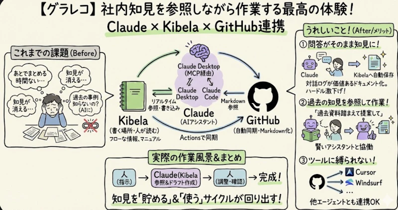 Kibelaを「書く場所」として維持しつつ、MCPやGitHub同期で「参照元」を整備することで、二重管理を避けられます。