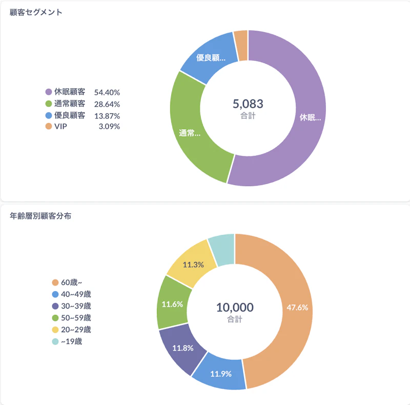 - 例(上):年齢別顧客数が折線、年齢別の売上高を棒グラフに